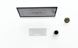 Ariel view of using a desktop computer and mobile phone